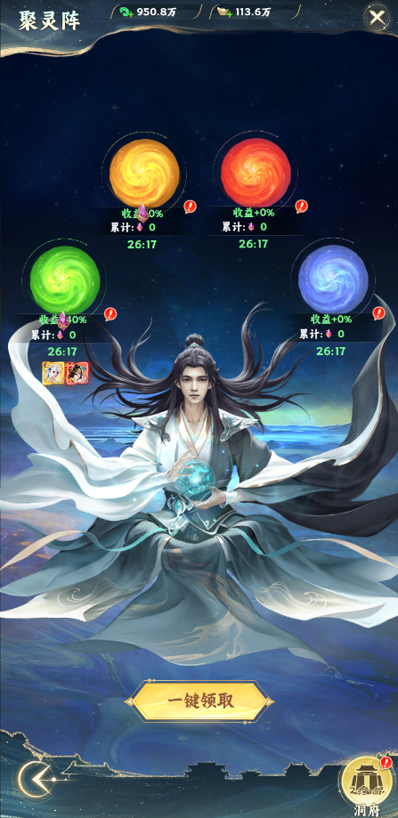 修仙3转开启。聚灵阵会随着时间产出神将升级材料,可以通过进驻伙伴提升聚灵阵产出效率,有几率产出特殊道具。聚灵阵可以消耗材料进行升级,升级后会提升产出效率。