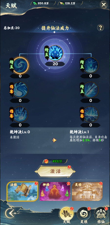 修仙2转开启,玩家消耗蕴灵丹开启灵根,开启后消耗灵气可以提升灵根层数,当灵根层数满了之后可以使用蕴灵丹突破