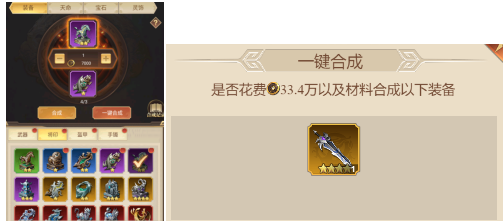 3. 一键合成会将当前所选中的装备类型下的所有装备合成到其能够提升到的最高品质。