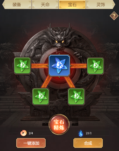 2. 镶嵌指定类型的宝石可以激活宝石组合属性,同种宝石只能镶嵌1颗。
