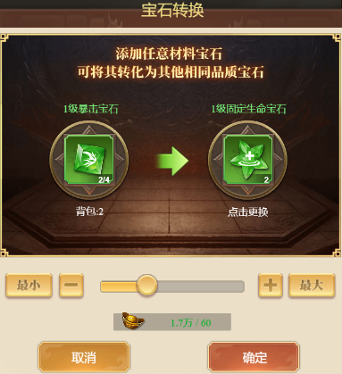 6. 可通过背包-宝石-宝石转换功能,将任意宝石转换成其他宝石类型。