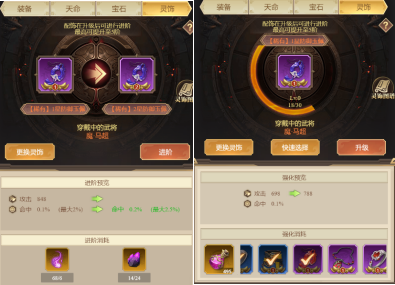 1. 灵饰可以消耗强化材料或任意未佩戴的灵饰进行基础属性的强化。