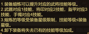 3. 熔炼的等级受装备星级限制,技能等级≤装备星级。