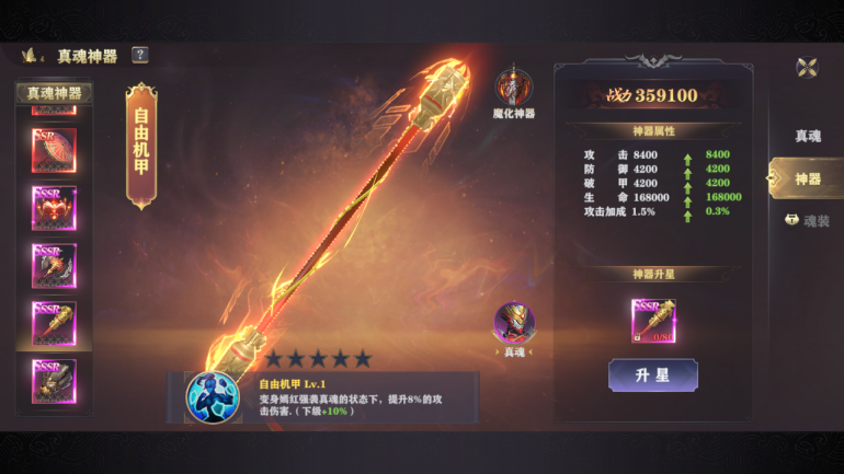 侠客武器的养成可提升高级伤害属性+技能效果的升阶