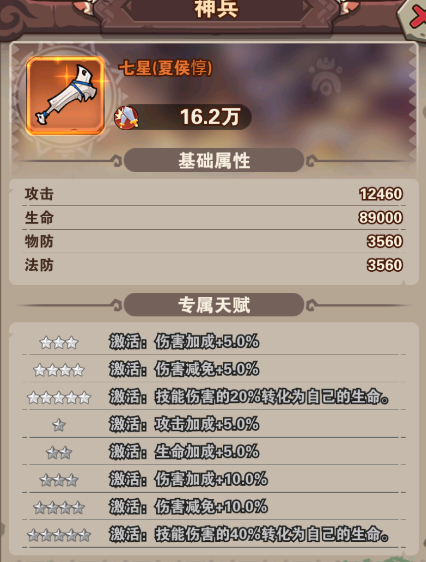 神兵:对能量(怒气)少的额外造成伤害(配合减怒武将、神器镇魂幡减怒可以实现)